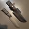 Vend magnifique couteau de bushcraft artisanal avec véritable ligne de trempe "hamon", lame en acier c130 "acier carbone "de 15cm de longueur, 4mm d'épaisseur et longueur totale environ 27,5cm. Le manche est en chene des marais "morta" qui est un bois fossilisé, il y a sur l'avant du manche une petite "entaille" visible sur photo qui était naturellement présente dans le bois . Intercalaire jaune/noir entre les plaquettes et la plate semelle, rivet mosaïque et talon dépassant. Etui en cuir noir véritable de 2,5mm d'épaisseur avec un motif "tete de cerf". Le couteau est comme neuf, je ne m'en suis jamais servis "collectionneur "