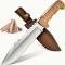 GROS COUTEAU BOWIE DE TRAPPEUR CHASSE LARGE LAME Acier Inox Manche Bois Etui Cuir - PA2858