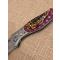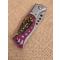 Couteau de poche automatique cran d arret avec bouton sécurité manche metal a plaquettes plastiques imitation bois de cerf