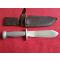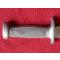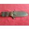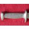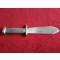 Couteau de marche des chantiers de la jeunesse de France 1941/1944. Poignée en alu quadrillé .Lame en acier inoxydable. Marquage Sabatier Jeune 'made in France et logo. Foureau en cuir fauve avec passant de ceinturon. Lanière en cuir et laiton. Bel état.