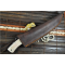 L’acier damas utilisé est constitué de plusieurs couches et a été plié avec deux types d'acier (1095 et 15N25) plusieurs fois afin d’obtenir une pièce de qualité de 150 à 250 couches.