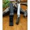 Hé oui je l'ai acheté pour cela: faire un manche en 5 morceaux me paraissait une gageure et une lame avec ce dessin de designer sans fausse note...Et qui coupe! Oui il coupe ce qui est assez rare pour être relevé sur ce genre de couteau de prix modeste .J'en connais des"très chers" qui n'ont pas cette finition .On pourrait "mégoter" sur le fait qu'à l'entrée de la lame, niveau ricasso, l'ajustage soit un peu généreux et devienne assez vite sujet à dépôts divers ;mais le pourtour est régulier et un coup de vieille brosse à dents règle le problème et puis un couteau ça s'entretient ,ça se nettoie et cet endroit existe sur tous les couteaux droits (il faut bien que j'exerce ma critique :je suis payé(très mal)pour ça)Marquages Columbia fuSheng Company USA Saber NOK315C.L'étui est un cordura très correct fermeture par scratch.