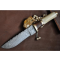 Sublime dague Perkin, taille impressionnante, solide et lourde en main, lame ultra tranchante . Surement très efficace mais sera tout de même plutôt à réserver aux vitrines qu'aux terrains de chasse. Superbe poignée en os teinté bleu.