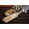 Je connaissais PERKIN de part sa réputation, et franchement ici elle n'est pas usurpée ! C'est du sérieux ! C'est du lourd comme on l'aime, et ceci dit; tant au niveau des finitions que de la qualité des matériaux utilisés ! C'est vraiment une très belle lame massive, au tranchant effrayant ! Son manche en soie tendue sur un empilage de laiton, bois clair et ébène est super classe, avec en prime une prise en main naturelle, son fourreau cuir pleine fleur est tout simplement magnifique !