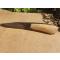 lame acier 55 Si, dureté 55 hrc, trempe sélective à l'argile réfractaire, couteau brut de forge avec des émontures creuses.