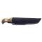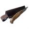 Le manche en rondelles de cuir après un petit traitement à la cire d'abeille lui rendra on étanchéité et sa patine. Pour le fourreau une petite restauration et il serra parfait, le cuir gras est de très bonne qualité. En bref un bon couteau, avec helle on ne se trompe pas sur la qualité.