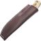 La lame du couteau Parforce Lupus est forgée en acier inoxydable 1.4116, un matériau réputé pour son excellent compromis entre dureté, résistance à la corrosion et facilité d'affûtage. Sa construction pleine soie lui confère une robustesse et un équilibre parfaits. Les plaquettes du manche sont taillées dans de la corne de cerf véritable, chaque pièce étant unique de par ses nuances et sa texture. Un trou de lanière permet de sécuriser le couteau et d'éviter toute perte accidentelle. L'étui en cuir marron, inclus, protège la lame et permet un port facile à la ceinture.