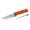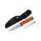 Couteau de chasse Maserin de qualité supérieure, conçu pour la découpe du gibier ou le travail extérieur Lame en acier N690, riche en carbone pour un meilleur tranchant et d'une dureté de 60HRC La dentelure proche du manche facilite la découpe d'os ou de branches Manche en résine G10 orange très ergonomique et pourvu d'une large garde de sécurité. Le plus de ce modèle : un fusil d'aiguisage incorporé dans le manche Longueur de lame : 11 cm Epaisseur de lame : 4 mm Longueur totale du couteau : 23 cm Poids : 190 g Etui en nylon, facile d'entretien