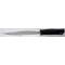 Couteau Muela Sarrio. Le Muela Sarrio est muni d'une solide lame en acier inoxydable de longueur 19 cm et d'une épaisseur de 4,5 mm. Son manche en gomme noire anti-dérapante striée avec oeuillet offre une bonne prise en main et sa garde en acier inoxydable est garante d'une bonne protection. Livré avec son étui en cuir noir. Dimensions : Longueur de la lame : 19 cm Longueur totale : 30,5 cm Poids du couteau seul : 306 Gr Poids de l'étui : 96 g