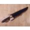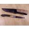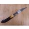 Acier inoxydable et manche en bois de cervidé, gravures sur flans de lame