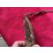 Couteau de chasse ancien avec un étui qui ne semble pas être le sien, à du vécu car, vu la forme, la pointe de la lame déborde sur un côté, voir photos, mais il fait son job, pour ce qui est du couteau, les plaquettes sont en bon état, hormis quelques rayures, la lame mesure : 12 cm, il y a des poinçons, elle aurait besoin d'un bon nettoyage, autrement en bon état et aucun jeu au niveau de la garde, pas de prix de réserve.