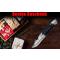 Lame en acier damassé de haute qualité : la lame à motifs artistiques en véritable acier de Damas offre une netteté et une durabilité extrêmes, idéale pour toutes les activités de plein air et de chasse. Le motif ondulé de l'acier de Damas confère à chaque couteau une touche esthétique unique. Crochet intestinal intégré : le crochet intestinal pratique au dos de la lame facilite le traitement du gibier et fait de ce couteau le compagnon idéal pour les chasseurs et les aventures en plein air.