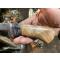 Très beau couteau JM forge ! Tout juste sorti de la forge ! Forgée dans une lame de ressort avec un manche en corne de buffle texturée et un joli morceau d'Orme !