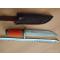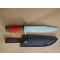 Couteau de chasse neuf, jamais servi.. Lame acier de 20 centimètres, manche en bois. Étui de ceinture cuir