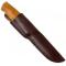 Livré avec un étui de ceinture en cuir de style scandinave surpiqué et maintenant fermement le couteau en toute sécurité sans besoin de boutons pressions ou de lanières.