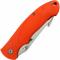 Couteau de chasse ouverture à une main. Dispose de toutes les fonctions essentielles pour le dépouillage du gros gibier: Lame de couteau de 2,8mm et scie massive dotée d'un crochet pour protéger la panse lors de l'ouverture pour dépouiller. la lame en acier inoxydable 420 se déplient d'une main grâce à un bouton de préhension et verrouillage fiable linerlock. Poignée orange fluo en matière synthétique ABS résistant. Avec clip de ceinture et oeillet pour lacet.