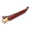 Le couteau Rainbow de Wood Jewel est un couteau de chasse compact avec un manche en bouleau frisé et en bois de renne. Il doit son nom aux rayures colorées arc-en-ciel qui sont incorporées dans ce manche. Livré dans son étui traditionnel lapon en cuir décoré de motifs rennes. Matériau de la lame : acier forgé à haute teneur en carbone Matériel du manche : bouleau frisé et bois de renne Longueur de lame : 7,7 cm Longueur totale : 19 cm Le bouleau frisé et la corne de renne étant des produits naturels, ils peuvent varier en couleur. Chaque couteau sera donc différent et unique dans ses teintes et les nervures du bois.