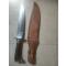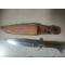 Couteau de chasse, type Bowie Magnum avec poignée en bois de cerf, longueur de la lame 21,5 cm, longueur totale 35 cm, avec son étui en cuir d'origine pour port à la ceinture avec cordon tour de cuisse. Belle finition robuste, garde, plaquette arrière, aucun jeu grâce à son écrou. Affûté (seule une légère marque sur le tranchant demeure mais qui disparaîtra lors des prochains affûtages). Fabricant inconnu. 1960