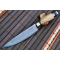 L’acier damas utilisé est constitué de plusieurs couches et a été plié et frappé avec deux types d'acier, un acier tendre et acier dur (1095 et 15N25) afin d’obtenir une pièce de qualité de 150 à 200 couches selon les modèles.