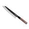 Les couteaux Séquoia San Maï sont fabriqués en acier 10Cr15CoMoV avec une dureté Rockwell de 60 +/-1, finition « semi-brut ». Le manche poli est en bois de séquoia dur (d'où sa résistance à l'humidité et aux bactéries). La mitre est en corne de buffle noire.