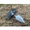 Couteau compact à mécanisme convertible permettant deux configurations d’utilisation : lame droite classique ou push dagger. La transformation s’effectue par simple bascule interne du mécanisme dans le manche.