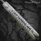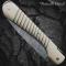 Lame : Acier Damas Torsadé. Pour la lame, épaisseur 3 mm au talon. Dureté : 56-57 Hrc.