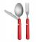 Couteau couvert camping Mercury "992.3", manche 9 cm aluminium anodisé , 3 pièces inox : lame, cuiller et fourchette.