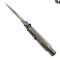 La lame adopte un **profil baïonnette** : droite, fine, parfaitement centrée et symétrique. Polie miroir, elle mesure 10 cm et déploie une ligne tendue et élégante. Compacte mais affirmée, elle donne au couteau une allure racée, prête à l’action tout en restant chic.