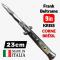 Le **stiletto automatique Frank Beltrame 23 cm** en corne de vache brésilienne avec lame kriss n’est pas seulement un outil : c’est un **symbole intemporel** mêlant tradition italienne, artisanat de précision et esthétique unique. Un couteau chargé d’histoire qui apportera une touche de caractère à toute collection.