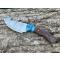 Couteau à dépecer/bushcraft avec crochet damas forgé LLF 21cm bleu
