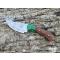Couteau à dépecer/bushcraft avec crochet damas forgé LLF 21cm jade