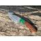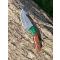 Tres bon couteau d'activité extérieur avec un manche ergonomique en bois de rose et une jolie garde en manche couleur jade (résine) muni d'un œillet pour le passage d'une dragonne.