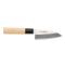 Couteau de formes japonaises équipé d'une lame inox et d'un manche en bois naturel.