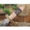 La lame est fabriquée en acier Damas en forgeant l'acier à haute et basse teneur en carbone 1095 et 15N20 avec des centaines de couches pliées.