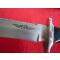 Cette dague provient de la maison de coutellerie allemande Haller réputée pour la qualité de ses productions ; la lame est produite dans un acier japonais inoxydable AUS 8 renommé pour sa solidité, sa facilité d'affûtage et sa capacité à garder le fil ; elle montre des serrations sur 10cm à l'arrière , permettant une utilisation scie grâce à des dents très affûtées et efficaces.