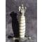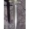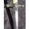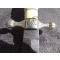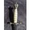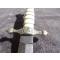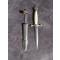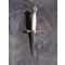 Couteau-dague, lame à motif Damas épointée de 150 mm signée Hubertus Solingen, fusée rhodoïd blanc, filigrane argent, garde et pommeau maillechort, dague d’officier de marine 1938 modèle juste après guerre, fourreau cuir argenté, LT 300 mm, Allemagne