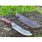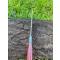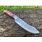 Le manche en bois de rose de 12 cm se distingue par son veinage rouge profond naturellement strié. Sa forme légèrement bombée remplit bien la main et offre une prise confortable. La mitre décorée gravée marque la transition entre lame et manche avec une finition soignée.