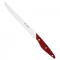 Retrouvez chez vous tout le charme des brasseries parisiennes à travers cette gamme aux formes originales et ergonomiques. Excellente qualité de coupe ! Ce couteau tout service à lame étroite et rigide permet de découper la viande ou la volaille et de trancher finement les filets. Caractéristiques techniques » taille : 21 cm » lame inoxydable » Manche plexi rouge » 3 rivets inox