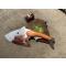 L'étui, véritablement artisanal puisque réalisé par mes soins, permet un port du couteau autour du cou.