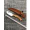Couteau avec lame montage plate semelle avec plaquettes de manche en bois d'Olivier fixation par vis borgnes et étui en cuir pour port à la ceinture ( fabrication française)