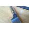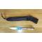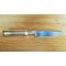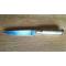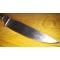 Couteau damas 128 couches (Bohler k90 / AN022B nickel quasi pur) trempe à l'azote , double revenu sous vide, manche douille .50BMG (non percée et estampillée FN 12.7 64 donc belge) , étui provenant d'une baillonette VZ . Montage soie transversale fixée avec un mélange epoxy/kevlar/carbone quasiment soudée . Seul petit problème : le manche fait du "vert de gris" si on le laisse trop longtemps (quelques semaines) dans son étui , le laiton browning ne doit pas etre très copain avec le cuir yougoslave, rien de méchant ca part en 3 coups de paille de fer.