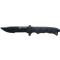 Lame de 124 mm en acier inox type 420 finition satinée noire mat, très résistante avec sérations sur la moitié de la longueur pour la coupe de sangles ou de cordes.