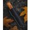 La lame 12C27 est livrée avec un étui en cuir véritable noir avec des coutures argentées assorties au bouton en aluminium à l'extrémité du manche.