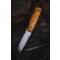 Le manche est doté d'une partie centrale robuste assurant une bonne prise en main et d'un repose-doigts solide pour protéger l'utilisateur. La lame, de grande taille, possède un affûtage scandinave classique qui confère une grande puissance à chaque mouvement du couteau.