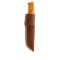Le couteau est livré dans un étui classique et profond, à double couture et passant de ceinture. Cette version est fournie avec un étui de couleur beige.