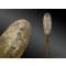 La poignée est en bois, recouvert d’un fil de cuivre.