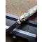 Très beau petit couteau d'écrivain, ou pendentif, très ancien. Reste de bleu brillant sur la lame. Ressort très ferme, et lame fonctionnelle. Très solide. Manche avec mitres en laiton. Plaquettes faites de cuivre, argent, or , incrustés . Marquage tolede . Servait à tailler les plumes d'oie d'écrivain au 17° , 18° siècle. Trouvé chez un antiquaire il y a 30 ans.