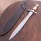 Épée Double tranchants Manche en Os et Bois Étui en cuir noir