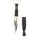 Very beautiful Shona knife, Zimbabwe 17.5cm. Beautiful ebony case with beautiful relief decorations, a carrying loop and its bottom of the case in the shape of a giraffe. Three beautiful braid ligature.