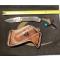 Le couteau est doté d'un bel étui en cuir gras à port horizontal.